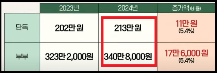 따라서, 1인가구의 경우 213만 원 이하면 기초연금 자격이 되므로, 예금이 3억 미만이면 되고,