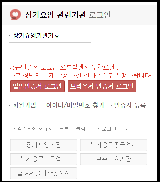 국민건강보험공단 장기요양보험 | 개인/기관 로그인